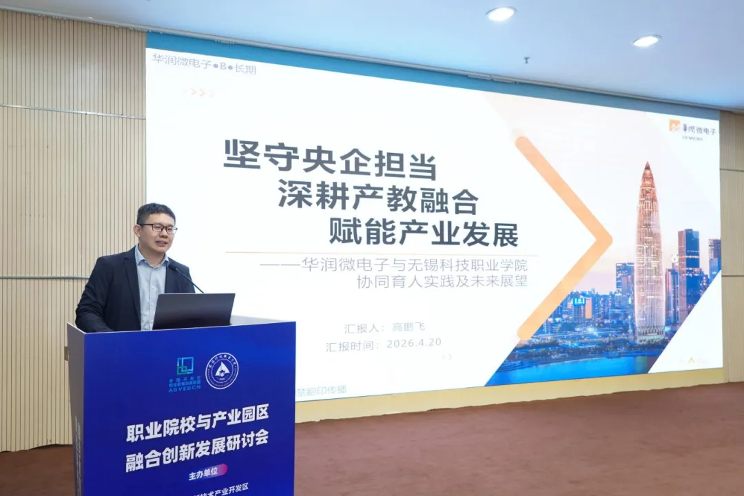 无锡科技职业学院党委书记张国华、天津工业职业学院校长杨理连共同主持校企分享环节。泸州职业技术学院党委书记何杰,唐山工业职业技术大学校长张建军,天津大学教授潘海生,广州科技贸易职业学院党委书记、校长蒋新革,无锡科技职业学院校长华裕良,华润微电子有限公司人力资源部高级总监高鹏飞先后发言,分别以《办好专业群、补强产业链、激活经济圈——校企共生服务经济发展的泸职实践》《机制共建·资源共享·人才共育:政园校企共同体赋能人才培养的唐工实践》《以政策制度突破,引领职业教育产教融合深入发展的天津模式》《国家战略下产业学院“三型三融”大国工匠培养模式创新与实践》《从“一体”走向“共生”——区校协同发展的新吴实践》《坚守央企担当 深耕产教融合 赋能产业发展——华润微电子与无锡科技职业学院协同育人实践及未来展望》为题,围绕“职业教育赋能区域经济与产业发展”这一主线,分享了在专业群建设、校企协同、产业学院创新、区校共生、产教融合育人等方面的实践成果与创新路径。