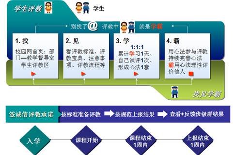 结合评教内容及“多方”评教信息系统,开展精细评教。根据评教内容,自主研发“教师授课质量管理系统”,应用大数据,追踪评教结果及变化趋势,推行督导、同行、学生协同开展授课质量评价,不忘初心,坚守课堂教学质量底线。①同行听课评课。纳入教师日常教学工作量,每学期末由二级学院督导组组织各教研室对任课教师授课质量给出评分及评语,汇总后统一录入“多方”评教信息系统。②学生评课。成立“校级-二级学院-班级”三级学生信息员组织,“小参与大素质”, 通过“找见学霸”活动,将学生参与评教与素质教育相结合,全程规范、引导学生客观参与评教。期初组织学生学习评教标准、评教宝典、评教流程并签署《诚信评教承诺书》;期中、期末召开学生评教大会;对评教结果偏离历史平均值±10%的,要求参评学生对照标准对老师写出较为具体的定性评语;搭建“广轻学生信息圈”,让学生 “享”说就说,按信息反馈标准及时反馈教师授课过程中存在的问题,如老师上课迟到、不按规定调停课,课室多媒体设备、桌椅、吊扇、灯具、空调等故障。③督导听课评课。除常规随机听课外,督导依托“多方”评教信息系统大数据,对学生、多方综合评价在80分以下的教师、新开课教师开展“集体+分管督导”重点听课。在建设“优质课堂”的过程中,对于学生评价在80分以下的教师,教学督导室开展精准评教。听课前检查教师课程标准、教学进度表、教案PPT等,听课后组织全体校督导集体剖析教师授课问题关键所在。通过与教师沟通形成书面建议以信息反馈单的形式反馈给任课教师及二级督导组,同时跟踪改进效果并指导教师通过设计量表、在教学过程中进行自评,帮助教师树立自我诊断、反思意识,改进课堂教学存在的薄弱环节。