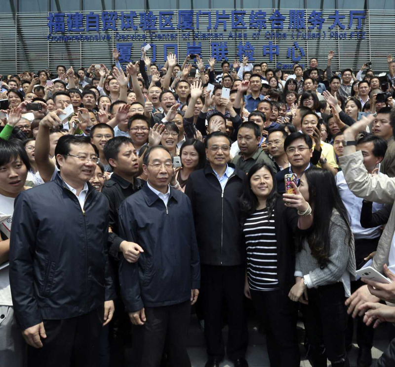 在考察泉州品尚电子商务公司时,李克强对他们利用“互联网+”的新模式有效连接市场供需双方、提供融资服务表示赞许。他还走进嘉泰数控机械公司,勉励企业结合实施“中国制造2025”,在创新发展中抢占国际产业竞争制高点。