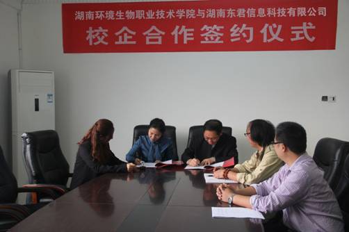 2015年10月21日,湖南环境生物职院与湖南东君信息科技有限公司举行校企合作签约仪式,全面实行校企双方共同培养、共同考核、企业实践、双向选择的四位一体“全订单——全过程”人才培养模式。