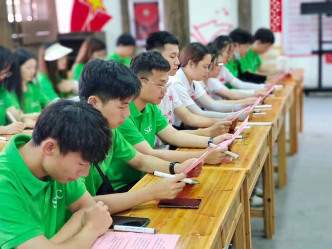 实践队员们踏上每一处红色基地,在光荣的党旗下许下铮铮誓言,并通过线上直播,把红色研学精神带给数千名金职学子,他们共读共产党宣言,沿途带领周围的游客一起学习党史,将红色书籍带到了火车上、红色基地、图书馆,以及旅馆里、乡村里,队员们和游客一起用书签写下“我想对党说的话”,在红色足迹中打造了没有围墙的“红色课堂”。同时,队员们撰写了《红色专项调研报告》《优秀党员访谈录》《红色微课堂》《红色寻访感悟录》,让“小书柜”传播了大思想,实践队成员紧跟时代步伐,搭乘中国共产党这座巍巍巨轮,不断摸索“25000公里的红色追寻”。