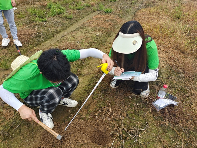 同时,实践队员化身土壤“医生”,前往金华市区城区蒋堂农场、长山乡石道畈金东区澧浦镇东湖畈、金东区塘雅镇“非粮化”改造万亩良田区域,通过生态沟渠调研、土壤检测、农业面源污染监控等研究检测形成意见反馈于民,帮助农民更好做到生态耕种、精准施肥,测土配方施肥技术,能够达到精准施肥、合理提高土壤质量,以期有效减少二氧化碳的排放量降低农业温室气体排放强度,为我国2060年实现碳中和,2030年前“碳达峰”贡献自己的青春力量。